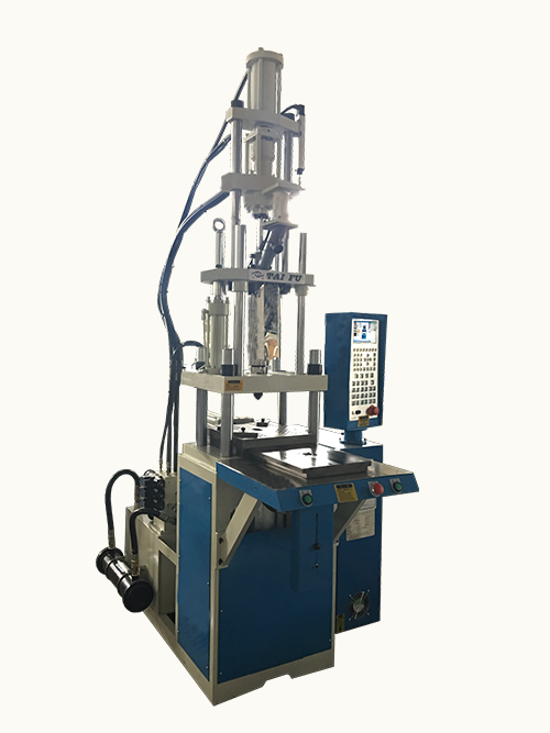 在V機種系列上加裝單滑模,讓機械完成一個循環動作,在關模后,下模自動滑移到操作者前方,便于操作,且成品頂出也在外部完成。